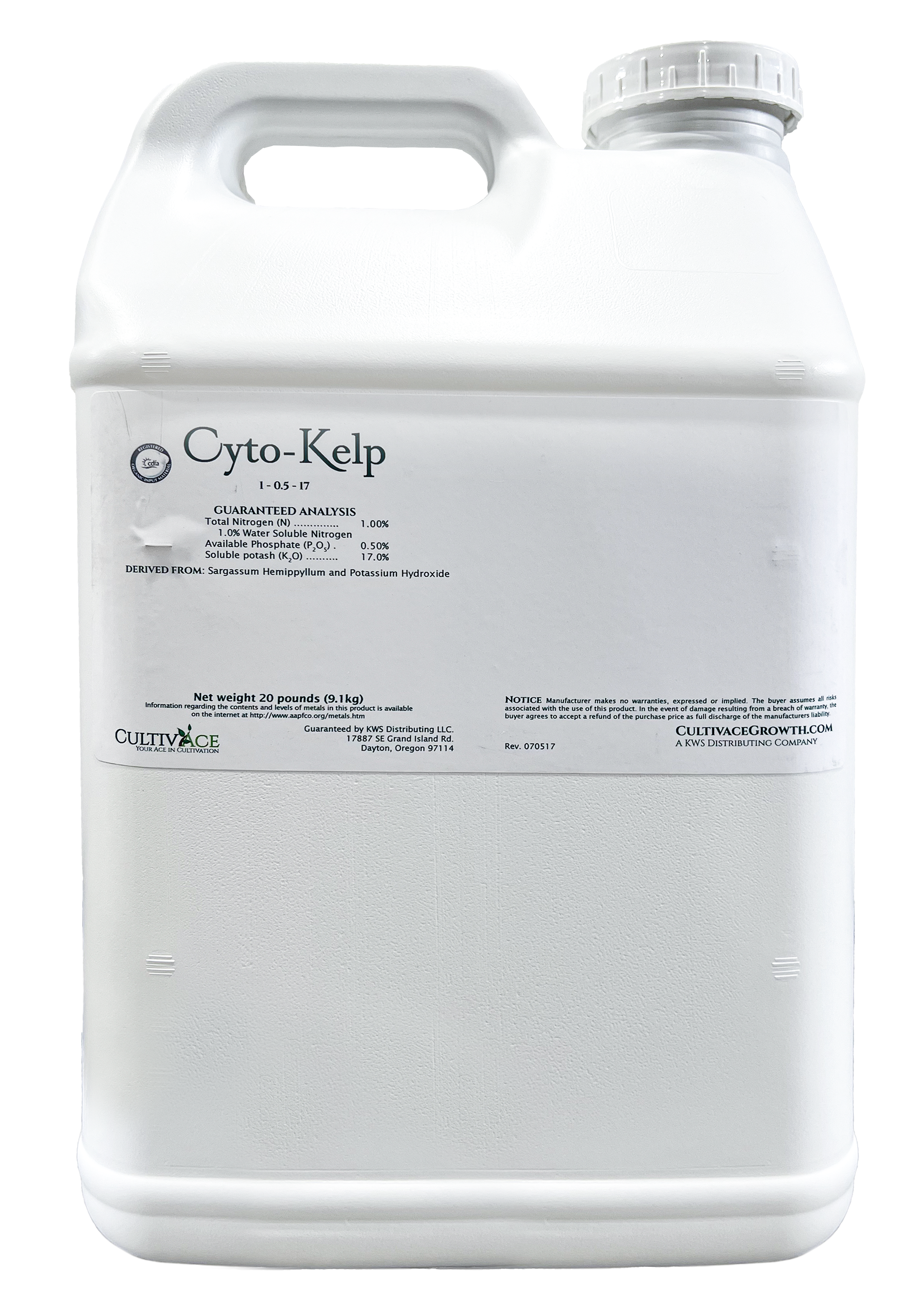 Cyto-Kelp is a dry formulation of kelp. It has a low use rate of 0.5 to 1 pound per acre. It is approved for use in the production of organic crops. It is highly water soluble.
