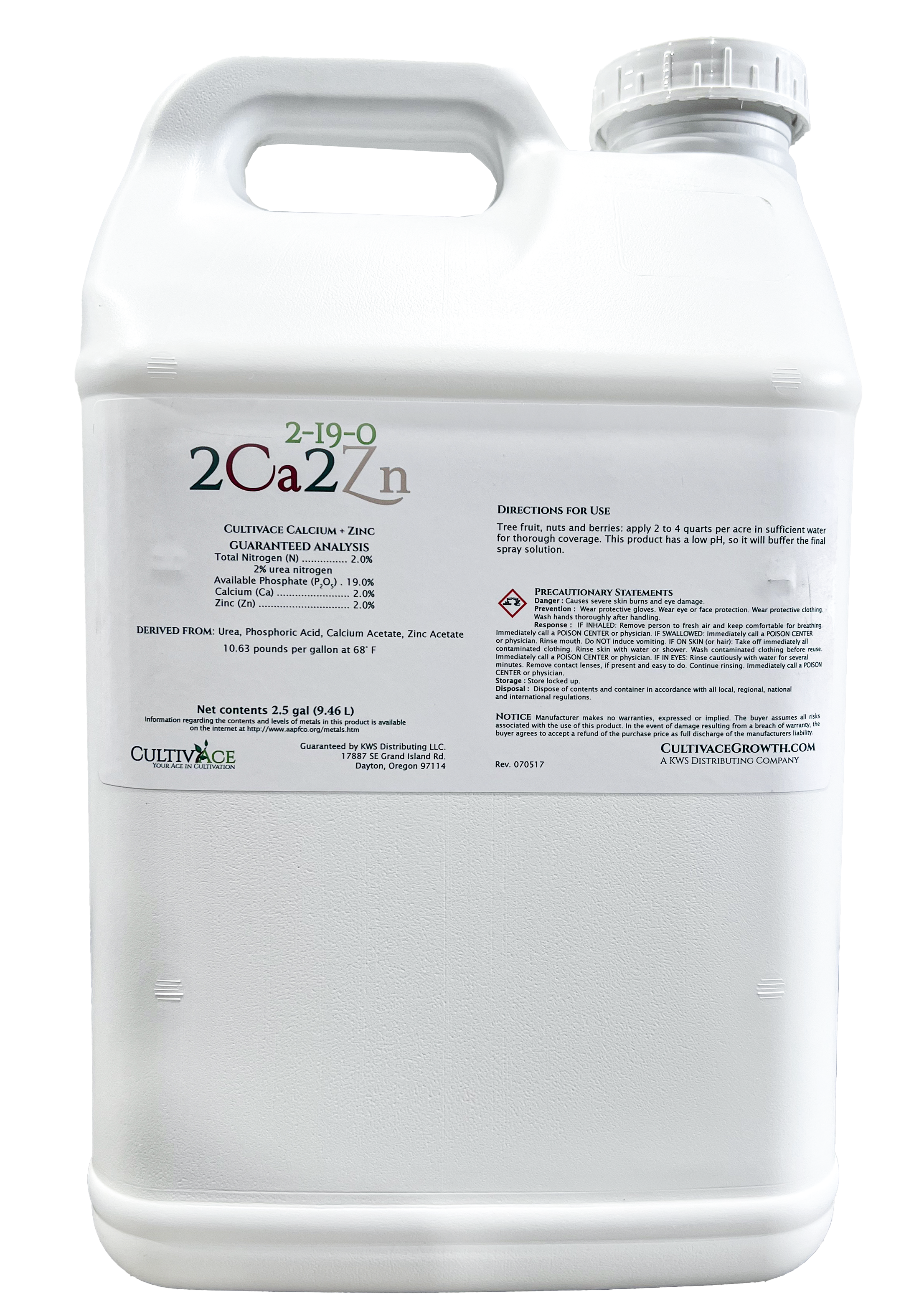 Early season fruit and nut development can be the most important time of crop development. This CultivAce blend ensures that the ideal amount of Phosphate is utilized while the plant is growing as well as adding Calcium and Zinc to make sure new fruit cells and root formation is a success.